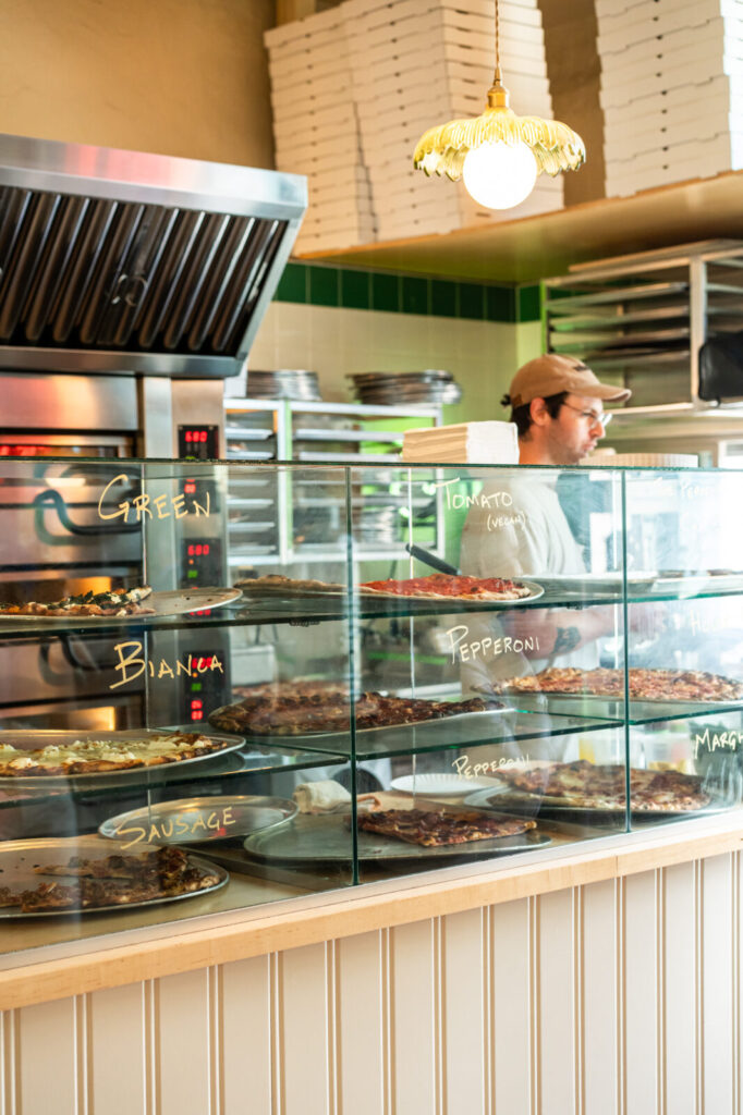 The pizza here is fantastic, but so is everything else. The heaping Caesar Salad is one of the best salads in town and their chocolate chip cookie is perfection. If you are a wine lover you must stop next door at their sister wine shop, Patron Saint where you can shop for bottles or enjoy glasses on site. (They have great non-alcoholic options, too!)
